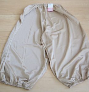 パンツの下にこれを履いておいて、トイレなどの時はペチコートのゴムの部分を持ち、パンツの裾ごとまくりあげます。