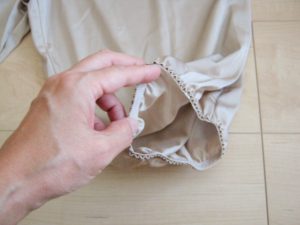 ゴムの中にパンツの裾を入れ込むような感じで。